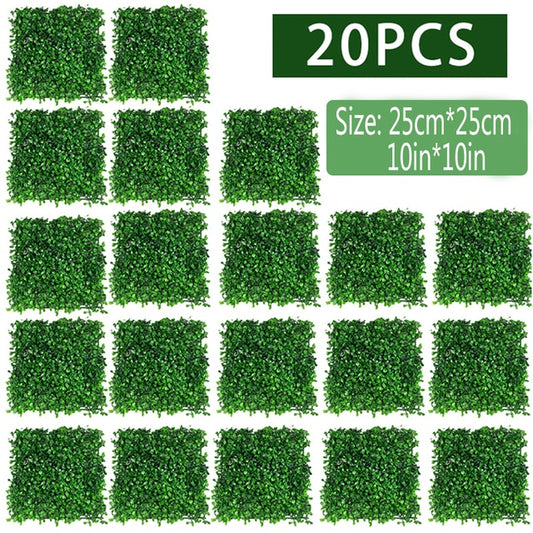 10/20pcs Artificial Plants Grass Wall Backdrop Flowers wedding Boxwood Hedge Panels for Indoor/Outdoor Garden Wall Decor 25x25cm