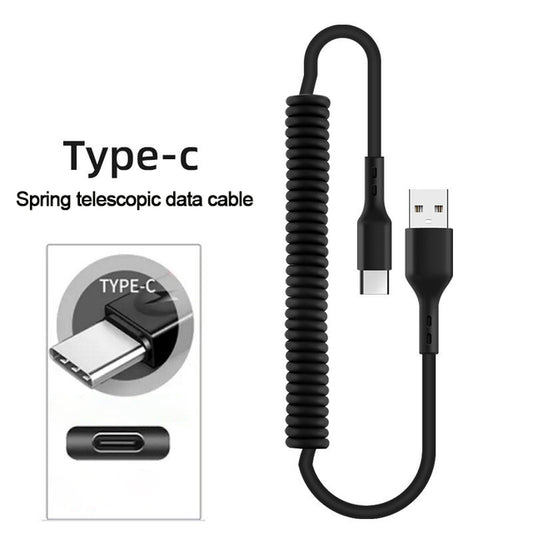 40W 5A USB Type C Data Cable Micro USB Spring Pull Telescopic Fast Charging Cable for Android Phone Accessories Car USB Cable