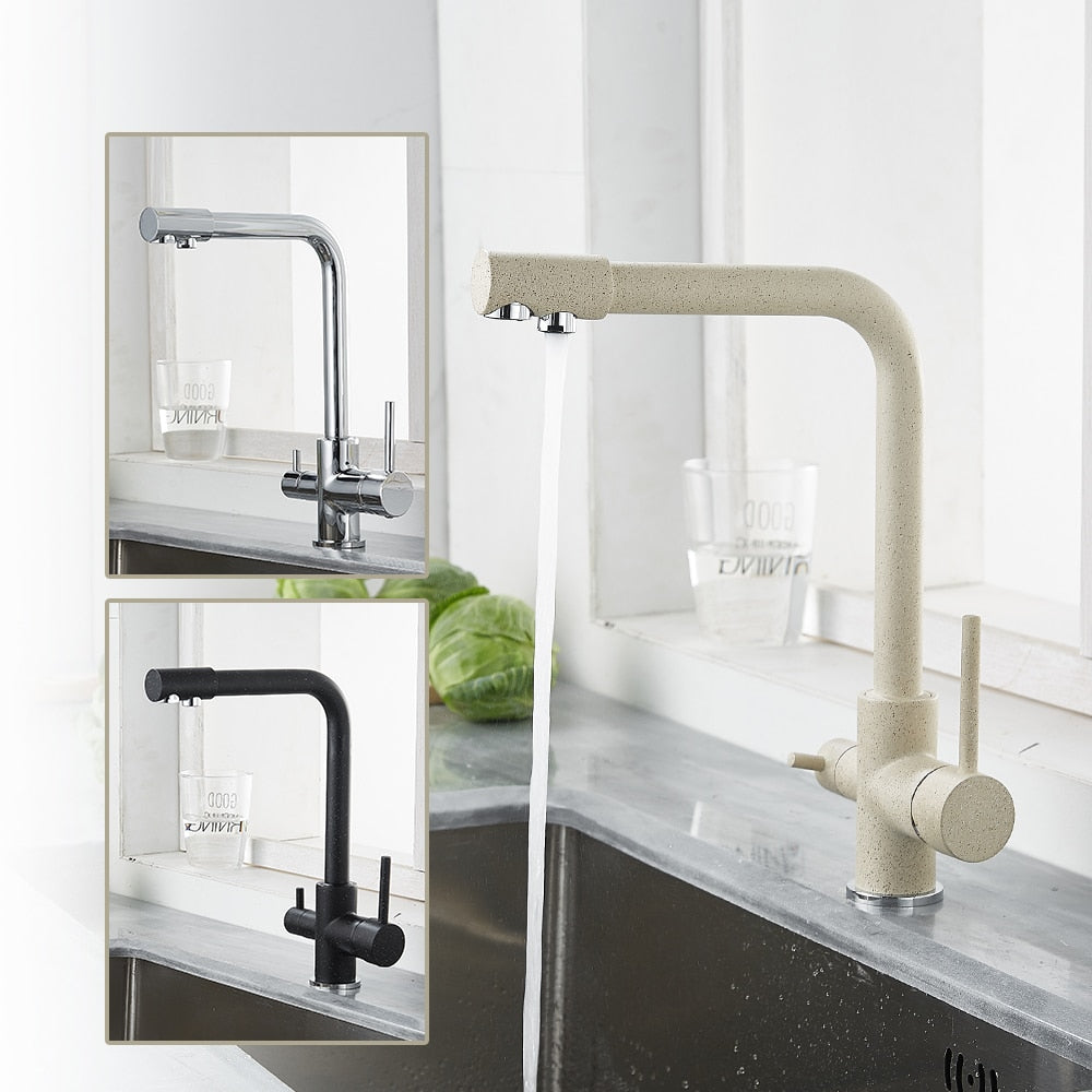 Kitchen Filtered Faucet Balck with Dot Brass Purifier Faucet Dual Sprayer Drinking Water Tap Vessel Sink Mixer Tap Torneira